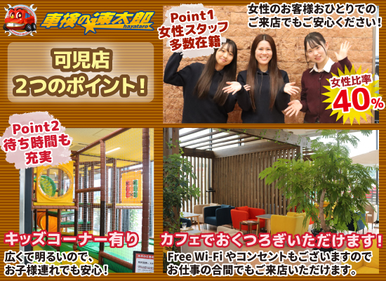 「車検の速太郎」可児店は、短時間車検を基本としておりますが、