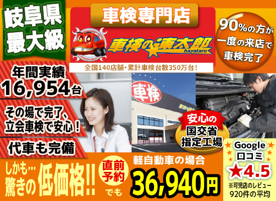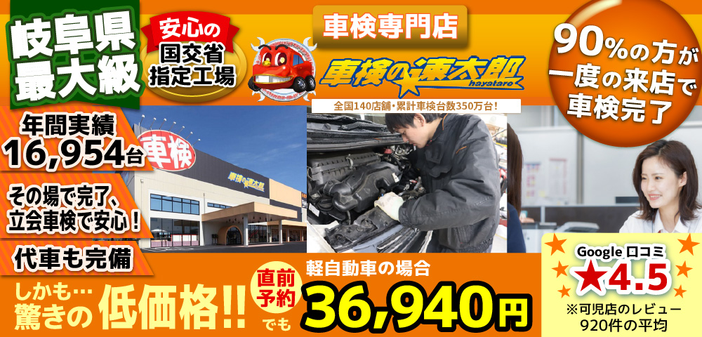 可児店は、「車検の速太郎」の中で全国第2位の車検実施台数を誇ります!